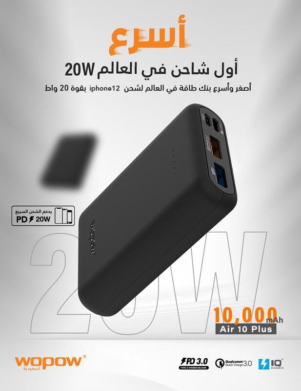 Air10 plus wopow pwer bank (PD ) 10000mAh شاحن محمول